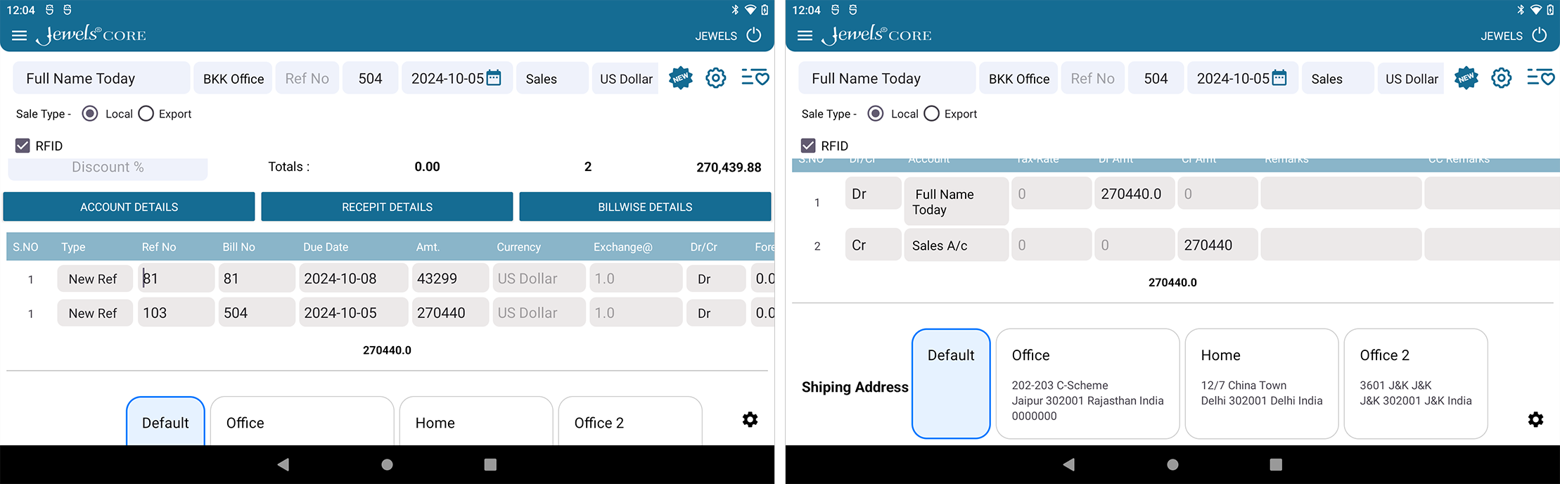 Jewels® Prime is an all-encompassing software solution designed for the jewellery industry, integrating production, inventory, and accounts management into a single platform. It provides a comprehensive solution for managing every facet of jewellery business operations. Jewels® Core is a advanced application connected with same database but accessible on laptops and mobile apps.